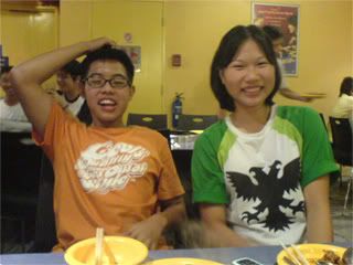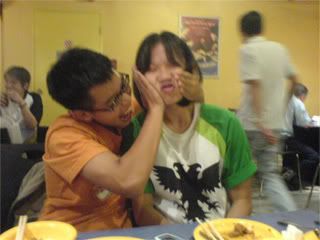 end of story! after that, we met mel and 3 guys eating together. whoa, scandalous ya? haha, nah. one's her fren. the other's her twin. and the last one's her long-lost cousin. or so she claims. o.0