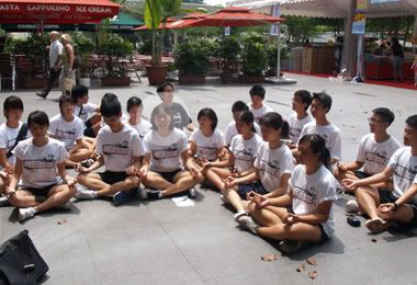 well.. this photo is supposed to be part of the scenario 'random'.. and we decided to meditate on the ground... yea, and we were supposed to look serious and stuff.. but somehow, jean just kept on bursting out in laughter >.< lol, and of course, she got caught on candid camera in the end and everyone had a great laugh over it. next time jean, you might want to learn the 'dao' look from me ;)